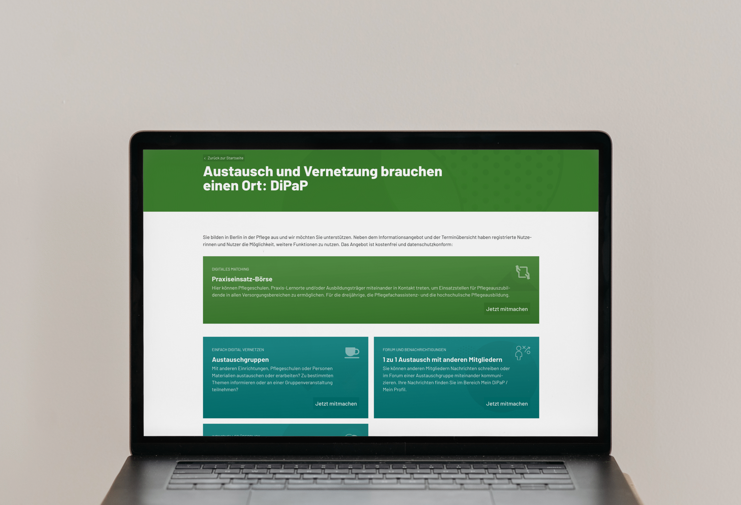 DiPaP wurde seit 2020 im Rahmen eines Projekts mit der Koordinierungsstelle Pflegeausbildung Berlin – KOPA entwickelt – finanziert durch die Berliner Senatsverwaltung für Wissenschaft, Gesundheit und Pflege. Konnektiv war und ist dabei zuständig für Konzeption, Design, Programmierung, Hosting und Wartung: